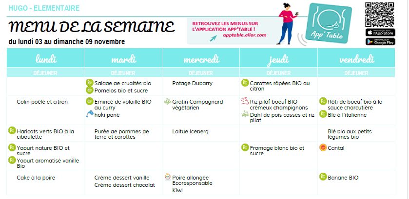 MENUS DE LA SEMAINE DU 03 au 07 NOVEMBRE